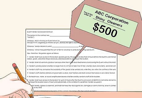 Negotiate an offer. An offer must be communicated clearly, have some commitment to follow through, and have definite terms. It may need to be negotiated, going through one or more counter-offers with the vendor, before the terms are agreed upon. For example, you may offer to pay a cleaning service $300 to clean your workplace every Thursday. The vendor may present a counter-offer, suggesting that they will agree to clean your workplace for $500 for the initial cleaning, and $300 per week after the initial cleaning.