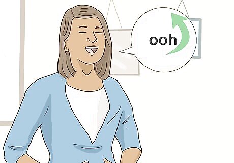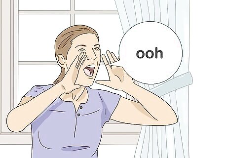 Control your breathing while you sing. To yell like Tarzan, you'll have to hold one long note without taking a breath. Take a deep breath and practice singing "ooh" again, but try to restrict the amount of air coming out of your lungs. Practice pushing out the least amount of breath as you can while still singing an audible "ooh." The better you become at slowing down and controlling the air in your lungs as you sing, the longer you can hold a note without running out of breath.