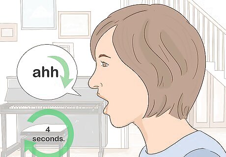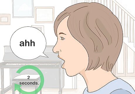 Sing “ahh” in your chest voice for 2 seconds. Your chest voice is the voice that you speak in normally. Open your mouth wide and let out a loud “ahh,” and sustain the note for 2 seconds.