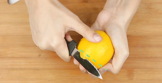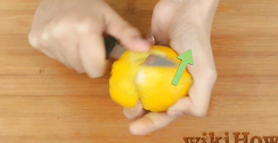 Make a shallow cut in the peel. Dig into the peel with the blade of the peeler or knife just enough to get it started. You’ll then be able to apply just enough pressure to strip the peel while steering clear of the pith. Slice both ends off of the citrus to give yourself a more convenient starting point. A brief soak in lukewarm water can help soften fruits with tough rinds, such as limes.