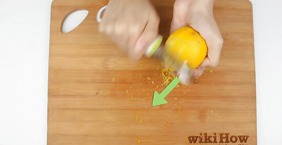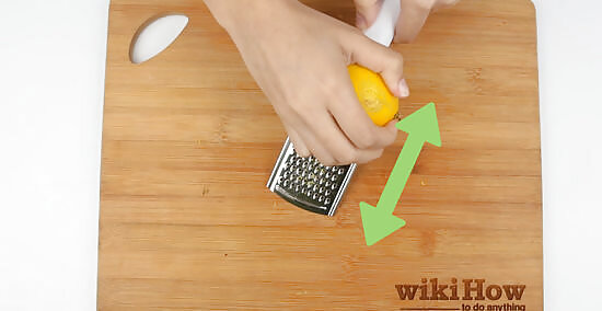 Run the fruit along the blades of the microplane. Hold the microplane at a roughly 45 degree angle while you grate, bracing one end against the cutting board. Use smooth, light strokes and turn the fruit after every few passes. The basic idea is to remove only the brightest colored part of the fruit’s exterior. If you’re using a box grater or microplane with multiple blades, use the smallest set of holes to ensure that the zest comes out with a fine texture. Applying too much pressure can cause you to cut down to the tough white pith beneath the peel. Pith has a bitter taste that can throw off the finished flavor of a recipe.