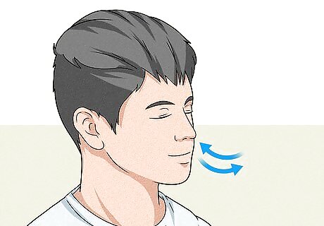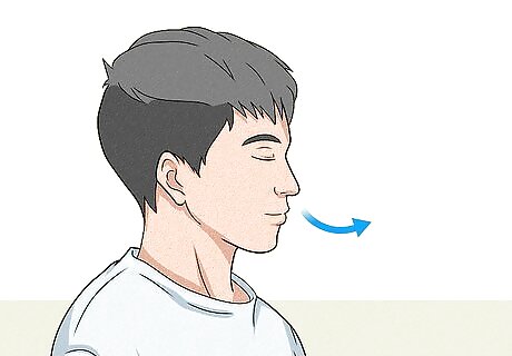 Close your lips and gently tighten the back of your throat. When you do the ujjayi pranayama, you’ll be breathing in and out through your nose. Gently close your lips, but don’t clench your jaw. Constrict the back of your throat, near where your voice box is located. The part of your throat you want to tighten is your glottis—the same spot that you constrict in the middle of the word “uh-oh.” You can also think of the way you tighten your throat a little when you want to whisper. If you’re having trouble figuring out how to do this, try opening your lips and gently whispering “hhhhha,” like you’re trying to fog up a windowpane.