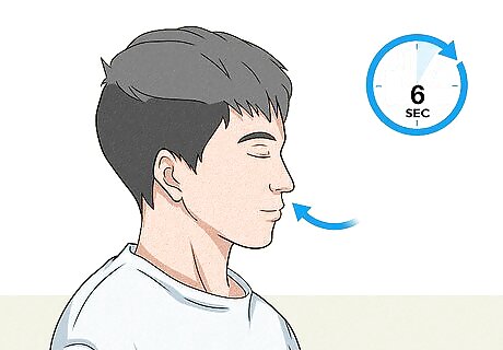 Breathe in slowly and smoothly through your nostrils. If there’s any breath in your lungs, gently exhale it. Then, take a slow, deep breath in through your nose and down into your lower belly. Focus on keeping it as smooth and steady as possible. Keep breathing in until your lungs feel fully expanded. You should feel your belly, sides, and back expanding as you take this breath. Sit tall with your head erect and your neck and back straight. Keep the muscles in your face relaxed. Focus on the present moment and the sensation of your breathing. When you’re first learning this technique, it should take about 3 seconds to fill your lungs. As you continue practicing, work on gradually increasing that time by about 1 second per week.