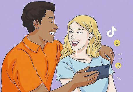 Use humor to spice up the situation. Dating & relationship coach Julianne Cantarella says using humor is a great way to flirt. If there’s something you can humorously speak to, especially on a dating profile, speak to it. Humor’s attractive! If you’re not sure how to joke with your crush or make them laugh, try these tips: Send them TikToks they’d find funny. Use corny pick-up lines to make them laugh. Break the ice by playfully referring to something on their profile if you’re on a dating app.