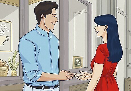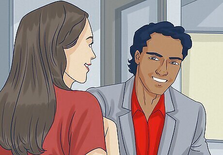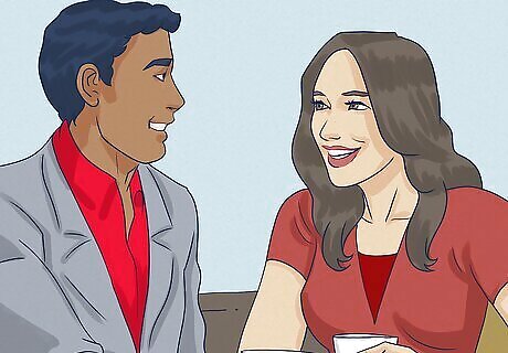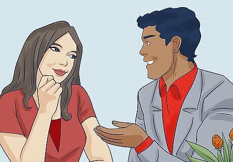 Make eye contact and keep open body language. Pompey reminds us that body language is everything when it comes to knowing whether or not someone is interested in you, and in letting them know you’re interested, too. Make eye contact, smile naturally, and even throw in some light touches on their shoulder or elbow when you speak to them. Avoid crossing your arms or leaning away, which can come across as closed-off or nervous. Instead, face your torso toward them and lean in slightly to show that you’re interested and engaged.